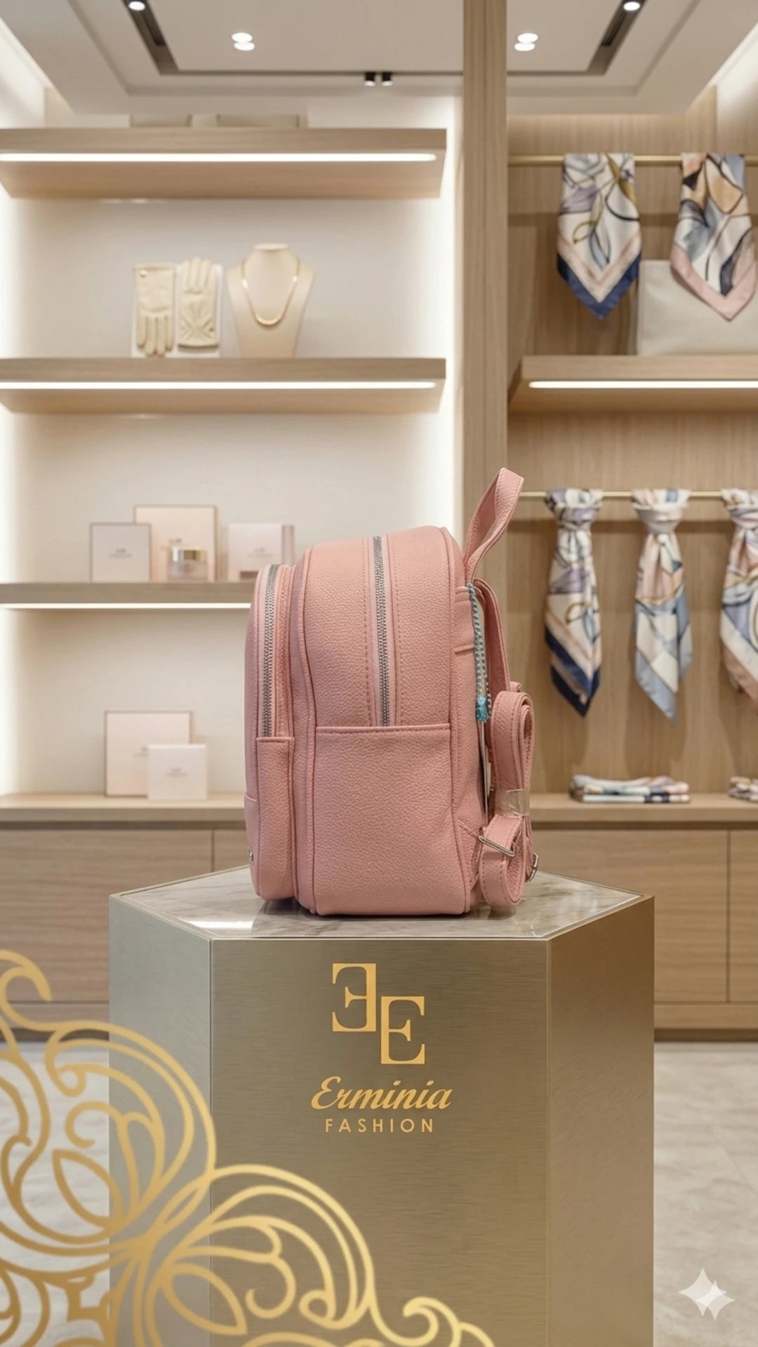 Un tocco di dolcezza che ti segue ovunque. Lo zaino Blush Dream unisce la praticità quotidiana all'eleganza discreta di una tonalità rosa che cattura la luce con delicatezza.